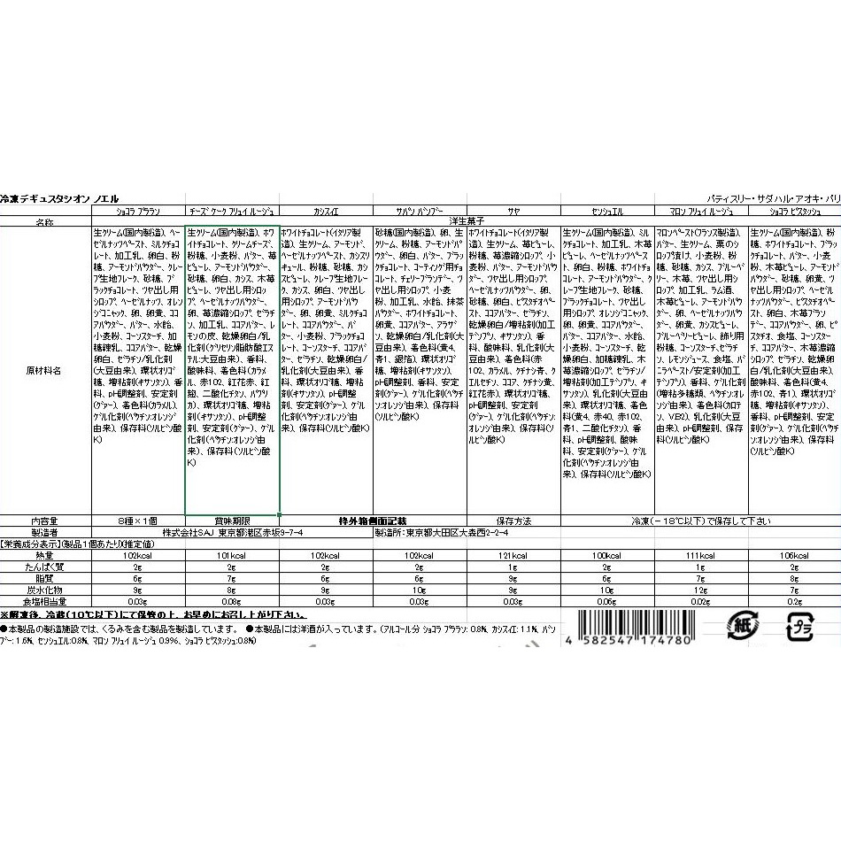 セット内容:デギュスタシオン(ショコラ プララン・チーズ ケーク フリュイ ルージュ・カシスィエ・サパンバンブー・サヤ・センシュエル・マロン フリュイ ルージュ・ショコラ ピスタッシュ ×各1個)