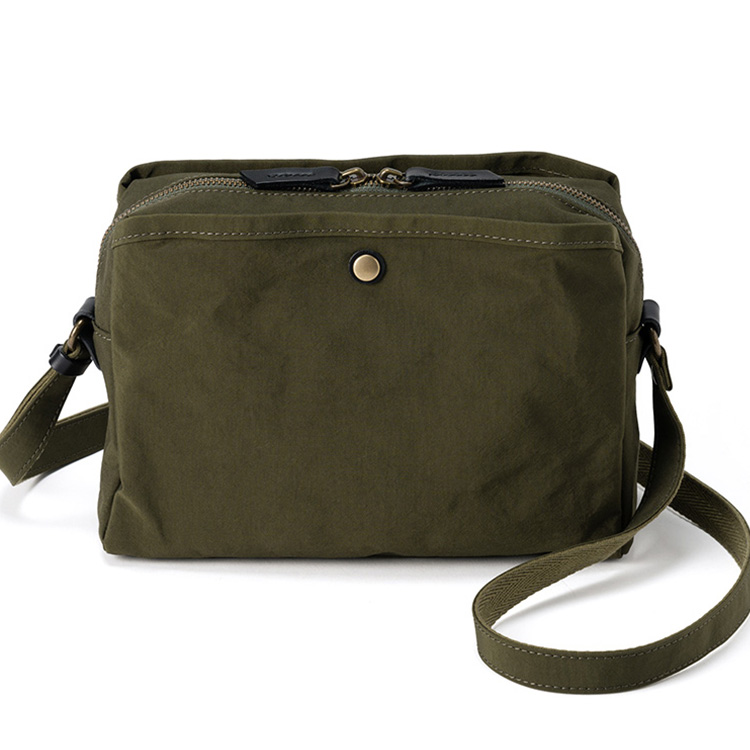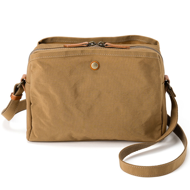 “軽量・丈夫・収納上手”の三拍子揃ったミニショルダー。コットンのように見える生地は、実はナイロン100%。ほんのりシワ感がある生地は、大人の休日にナチュラルに溶け込んでくれる。