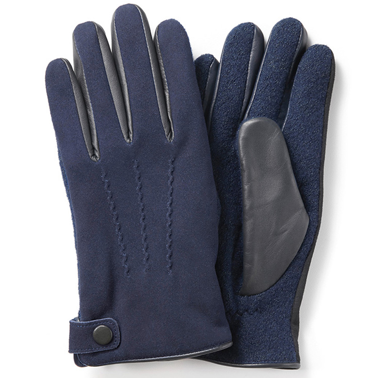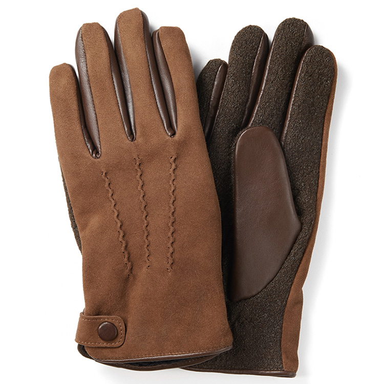素材:掌部/毛、アクリル、甲部/ゴートスエード(やぎ革)、指マチ部・甲側親指部・パイピング・ボタン部/羊革