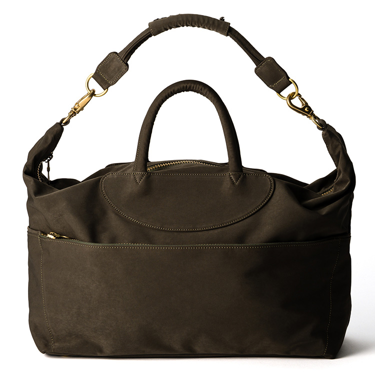 バッグの両サイドが翼(ウィング)のように広がっていることからその名がついた「ウィングストラベラー」。ショルダーベルトを付け替えることで、①肩掛け②手持ち③斜め掛けの3つの持ち方を楽しめる。