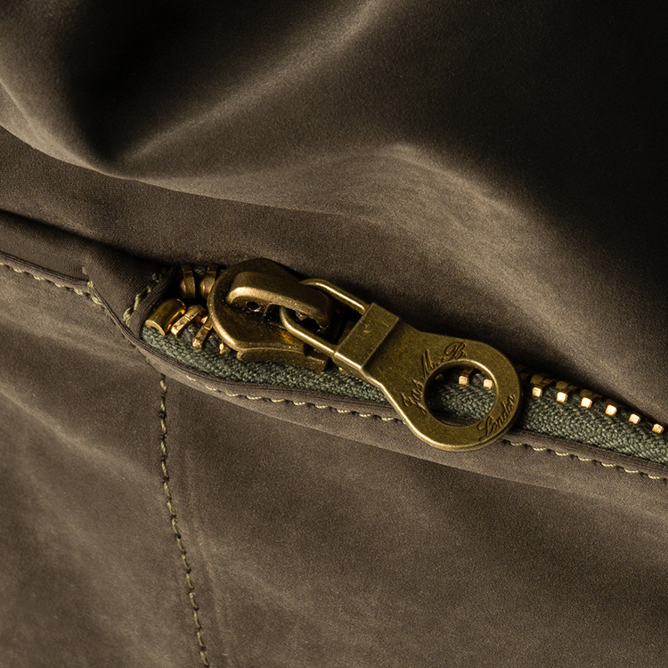 また、“JAS-M.B.らしさ”を追求する上で忘れてはならないのが真鍮パーツ。ファスナーの引手は、当時と同じパーツを一から再現。ディテールまでこだわり抜いた逸品は、長年のファンをも唸らせること必至だ。