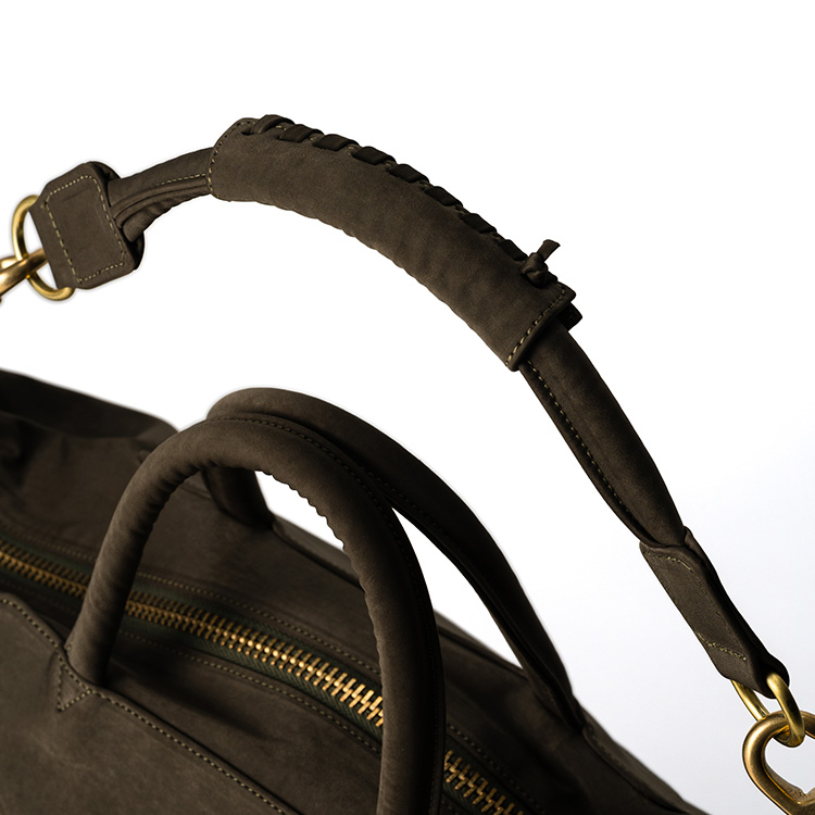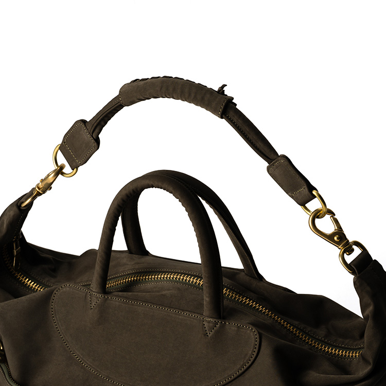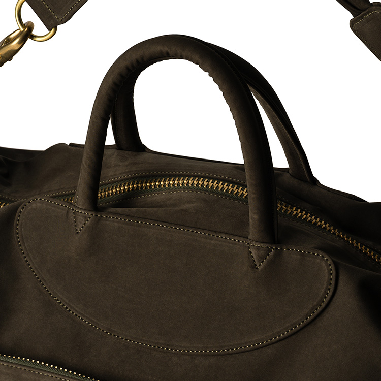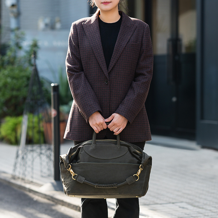 ボストンバッグのようにハンドルを手持ちしてもクラシックな雰囲気に。