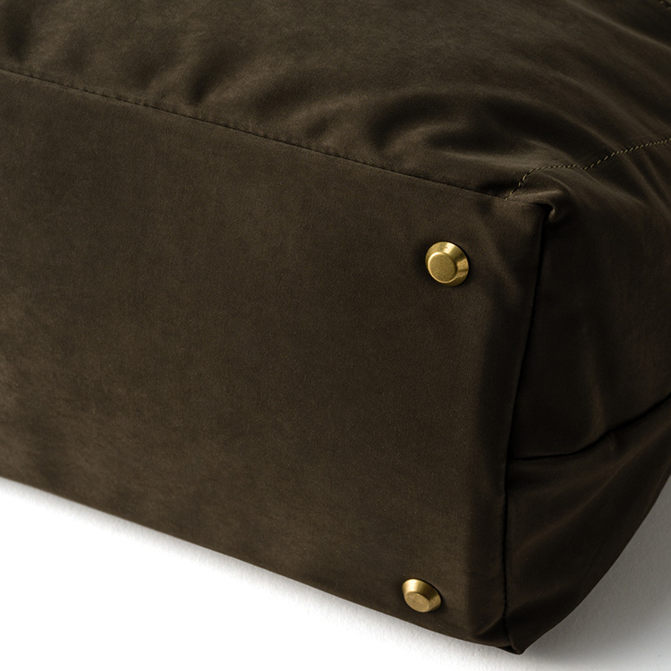 ヌバックやスエードを思わせる滑らかなタッチの生地は、使い込むほどにデニムのようなアタリや、レザーのような光沢感をまとってゆく。化繊でありながら経年変化を楽しめる、非常に稀有な素材なのだ。