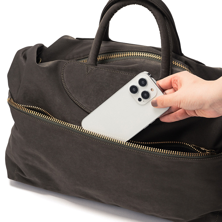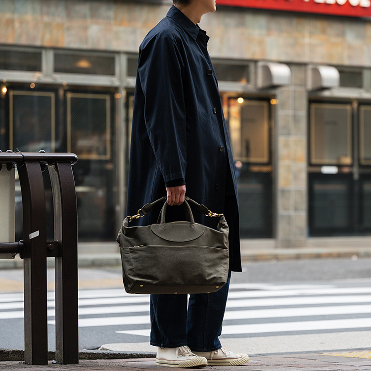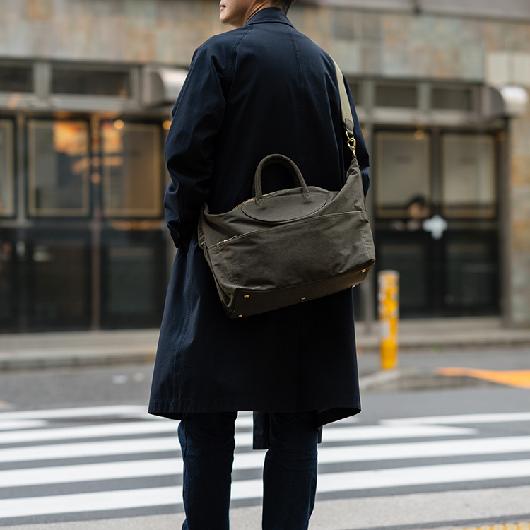 ワンショル、手持ち、斜め掛け…。どんな持ち方でもサマになるウィングストラベラーlargeは、旅や出張など荷物の多いシーンはもちろん、あえて普段使いするのもカッコイイ。