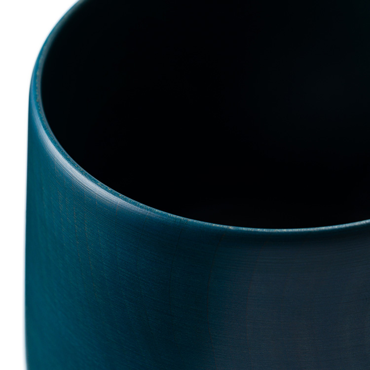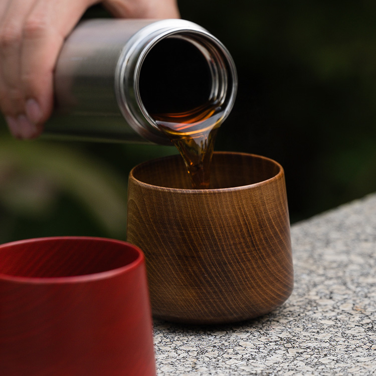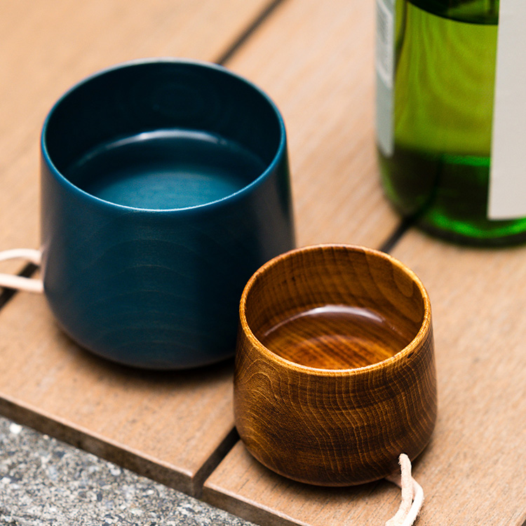そして漆器の特性も見逃せない。最も特徴的なのが、木の器なので熱い飲み物を入れても外側には熱さが伝わらないこと。金属のカップだと熱くて手で持てず、口を付けた時も縁の熱でアチチと火傷してしまうが、NODATEなら全然問題なし。また氷点下でも漆は凍結せず、肌や唇にくっつく危険がない点も金属より優れている。