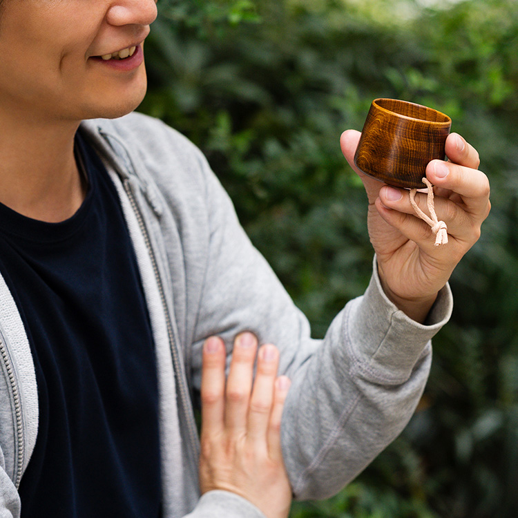 アウトドアカップにステンレスやプラスチックでは味気ない。木、そして漆器の風合いを愛でつつ、長く付き合うほどに自分だけの逸品に仕上がっていく。アウトドアアイテム好きなら、そんなマイ道具を持ちたい気持ちがよくわかるのでは?また軽くて清潔なこの器を自宅でも職場でもシームレスに使える点もうれしい。アクティビティに限らず、花見やバーベキューなど身近な外飲みタイミングでも活躍しそう。このギアでぜひ新たなドリンク体験を。