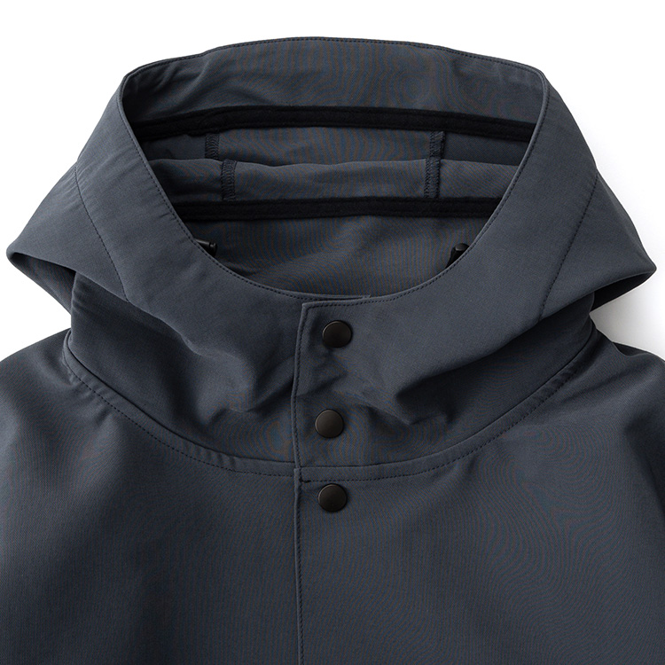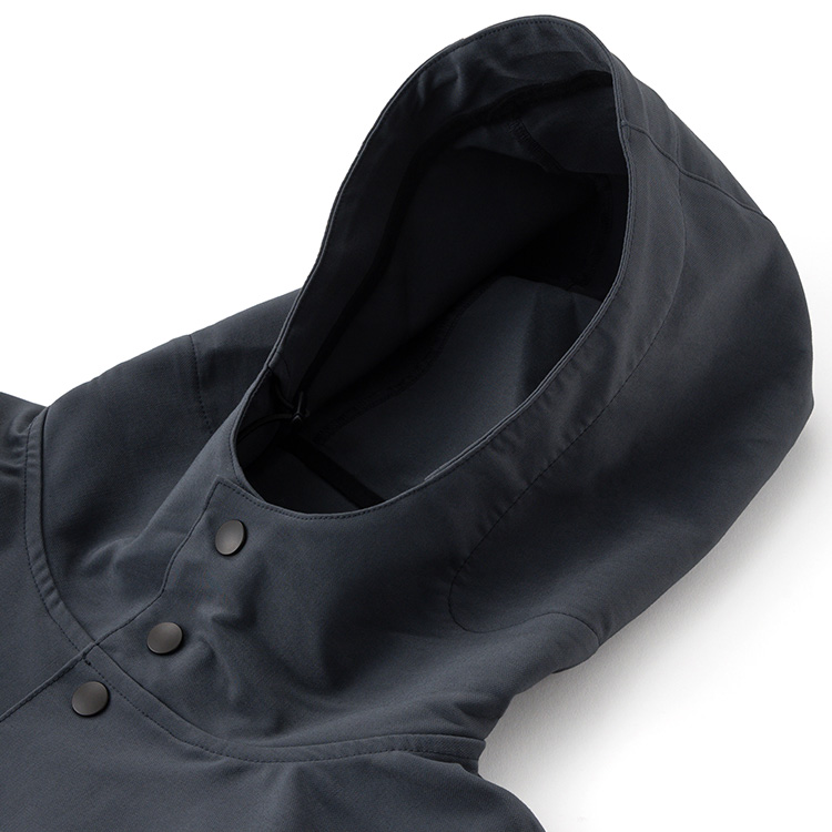 デザインのベースになったのは野球の「観戦着」だ。球場で観戦している際に寒さを防げる服を指し、頭をすっぽりと覆うフード、首の隙間からの寒風をシャットアウトする立ち襟、アジャストするドローコードはその名残。