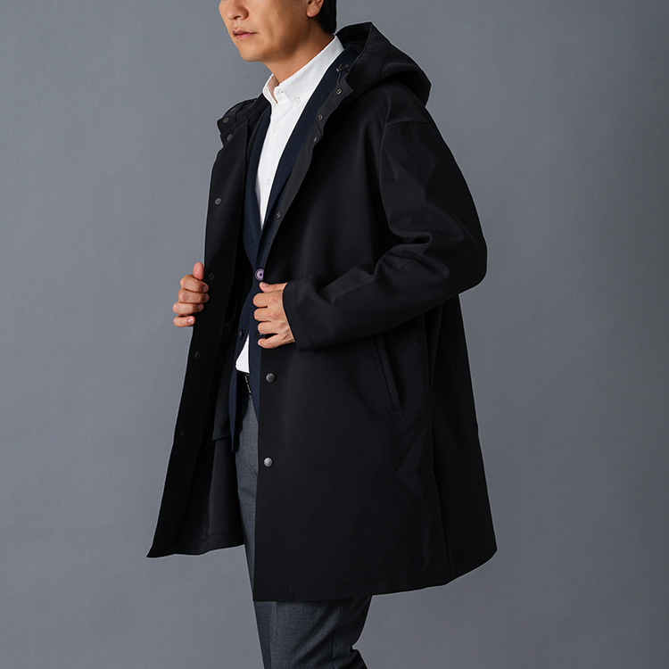 カラーはBlackDark Grayの2色で、どちらもカジュアルなら合わせ方に困らない。ビジネスなら当然ブラックのコート! という方もフィットするし、黒系のスーツが多い方ならやや青みのあるDark Grayを選んで印象を変えるのもアリ。オンオフで使え、着れるシーズンも長いから非常におトクな冬アウターといえそうだ。