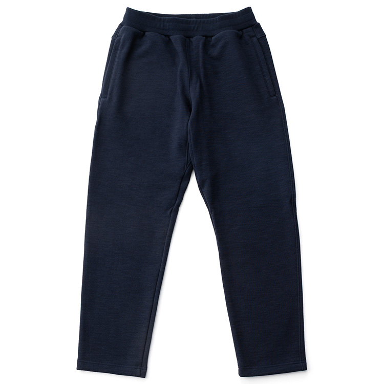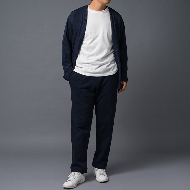 展開カラーは3色。引き締まった印象を醸し出しオフィスにもなじむのはネイビーとブラック。ヘザーチャコールはこれぞスウェットパンツなカラーで、3色の中でも特に糸の特徴や杢調を味わえる。万能な秋冬リラックスパンツをウォッチしているなら、これが正解のひとつとなろう!