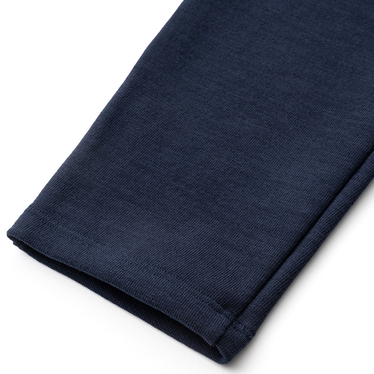 キュッとしたウエストのリブと、コードで止めるラクラク仕様。コードはそれぞれのカラーに合わせた色を採用している。また、コードは内側で交差していてキュッと締めやすい構造だ。股下にはガゼットクロッチを入れているので、足を広げやすい。