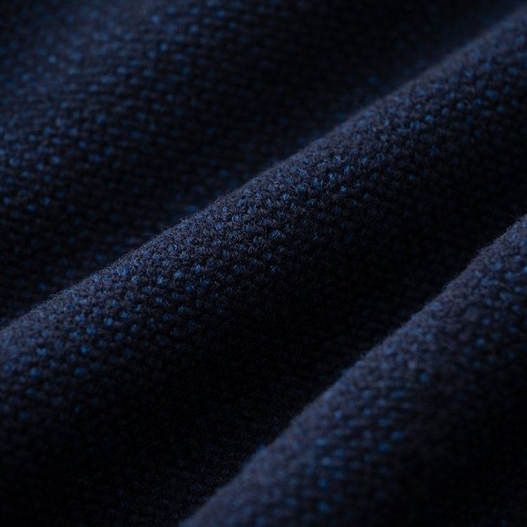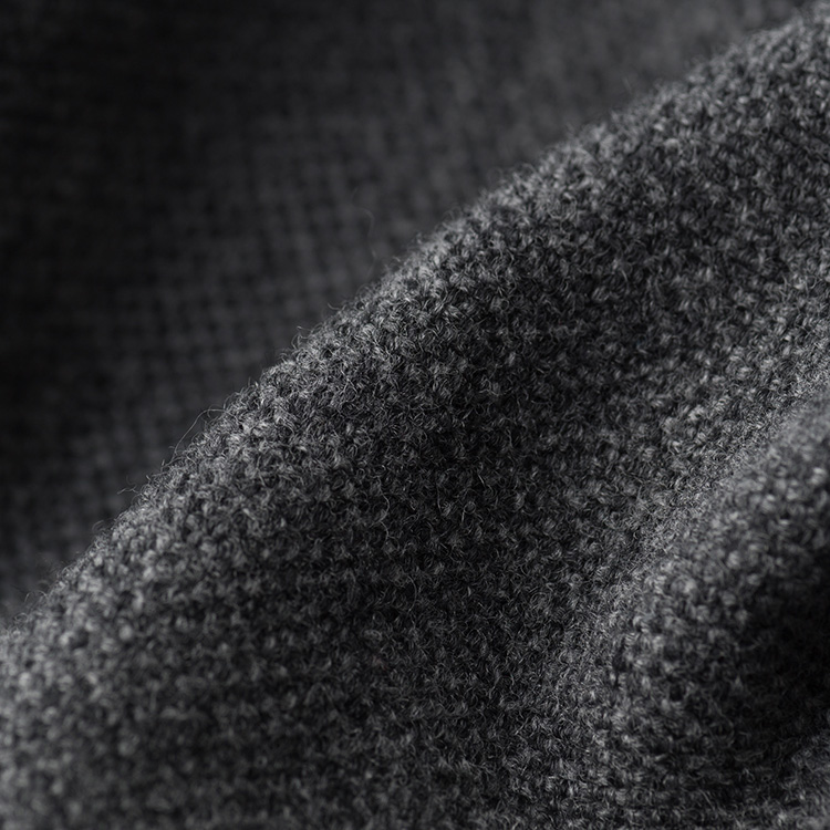 オーストラリア産の上質なメリノウールだけを使い、濃淡が異なる2色の糸を織物のようにしっかりと編み込んだ編地の表情は只者ではなく、奥行きのある、実に上品な出で立ち。