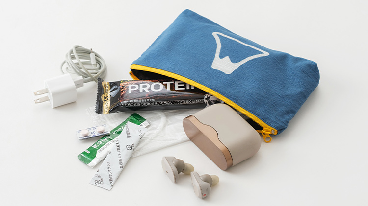 充電器やワイヤレスイヤホンなどのミニ電化製品のほか、常備薬や小腹が空いた時のためのポケットフード。近年の必携アイテム、マスクなど。何かと細かいモノが増えた現代生活には、実はポーチが縁の下の力持ちになっていると言える。