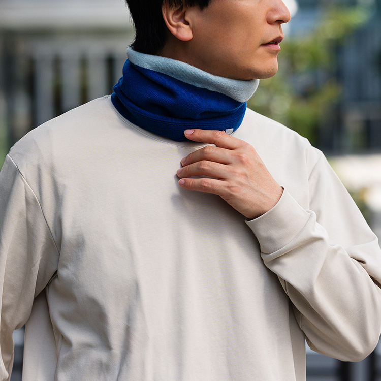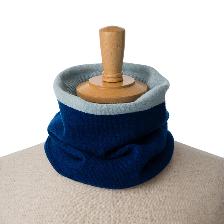 バイカラーネックウォーマーに、新色「モカ×アース」「アイボリー×杢グレー」「コバルト×サックス(藤巻別注)」「杢グレー×アクア」が登場!