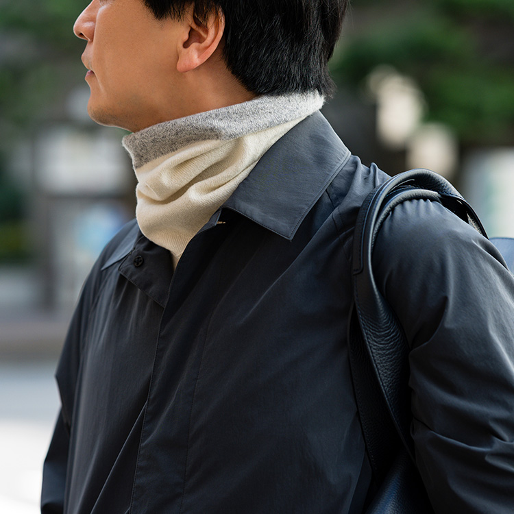 最高級カシミヤ100%の心地よさ+バイカラーの遊び心!チラリが粋なネックウォーマー