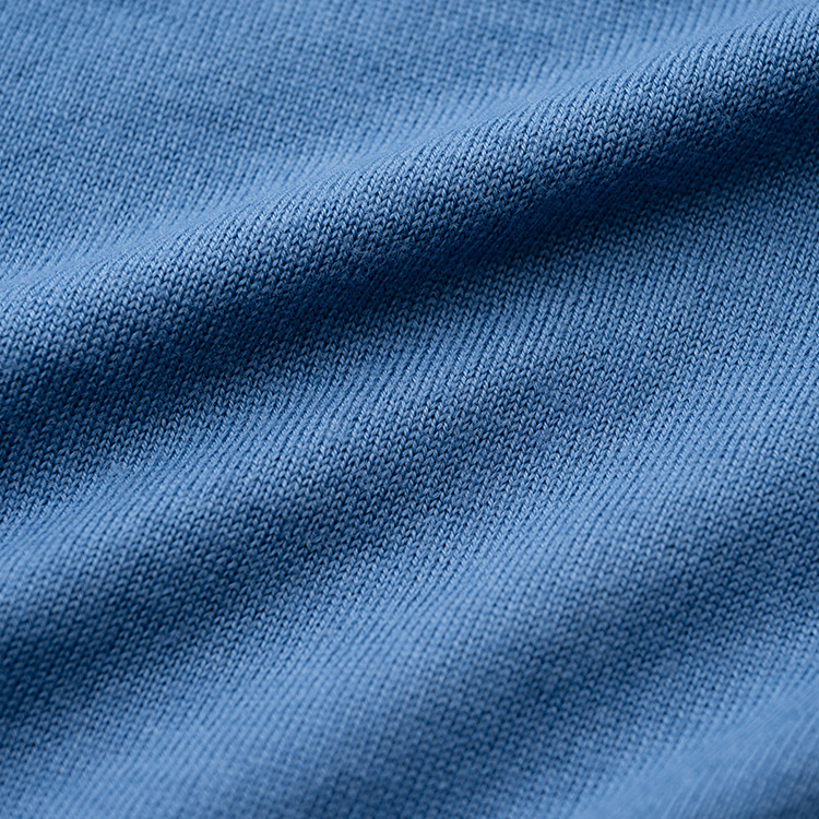 薄手のニットながら、毛羽をカットする「オフスケール加工」によるソフトな風合いとふくらみは、確かな上品さをたたえている。