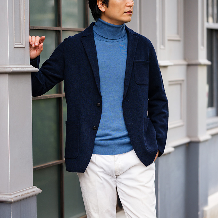 上質なエキストラファインウールを採用した素晴らしい質感と高級感は、一般的なタートルネックとは一線を画すドレッシーな出で立ちをもたらしている。