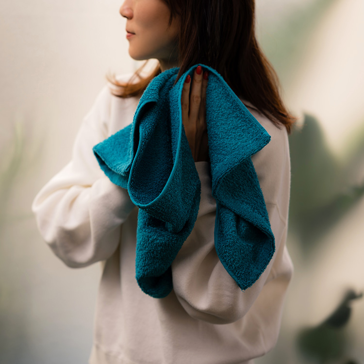 全身を拭き上げるのに十分な大きさと、コンパクトさを併せ持った絶妙なサイズ感。持ち運びしやすいので、ジムや旅行にも◎。かさばらないので洗濯しやすい&干しやすいのも魅力。