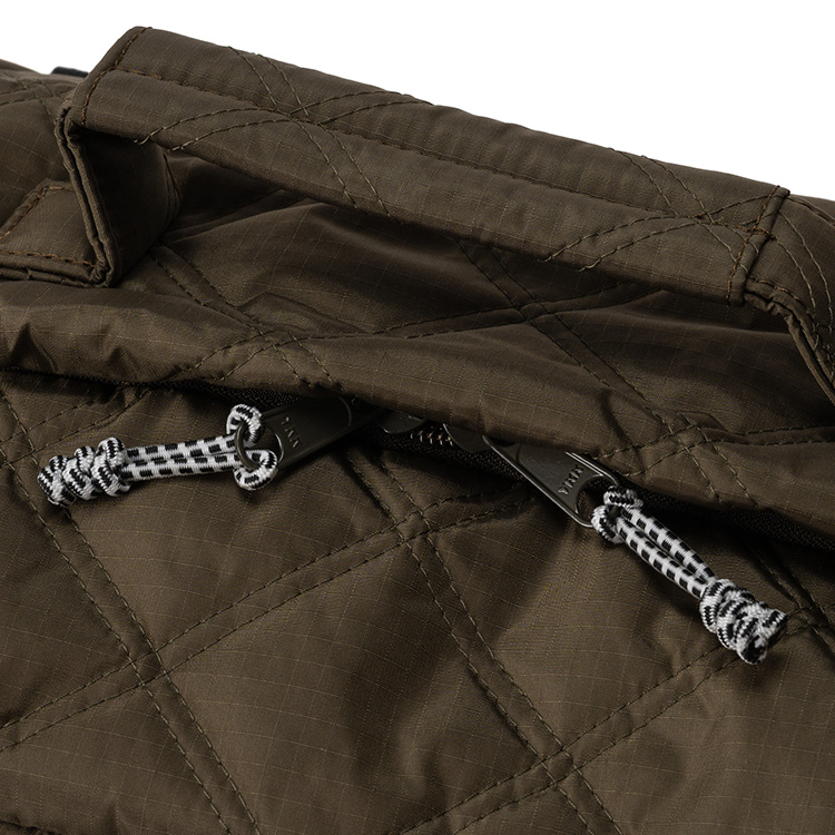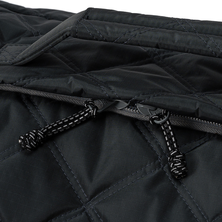 旅行バッグで重視されるのが、荷物を気兼ねなく詰め込める「軽さ」、ガシガシ使える「タフさ」、突然の雨にも対応できる「防水性」だが、もちろんその点もぬかりなし。本体の素材は「リップストップ」と呼ばれる高強度ナイロン。軽いうえにアウトドア級のタフさを誇り、おまけに撥水性も抜群だ。