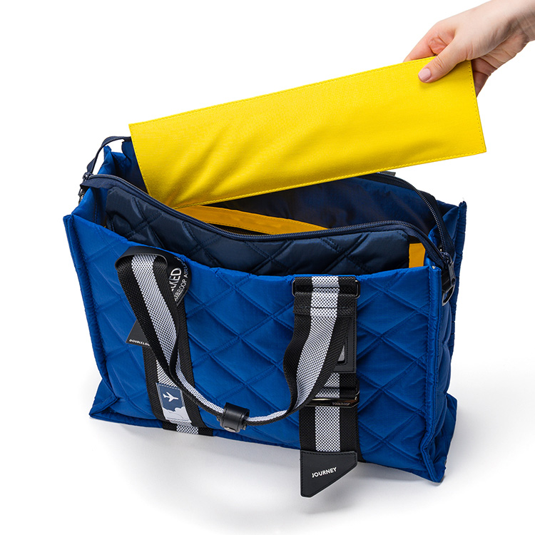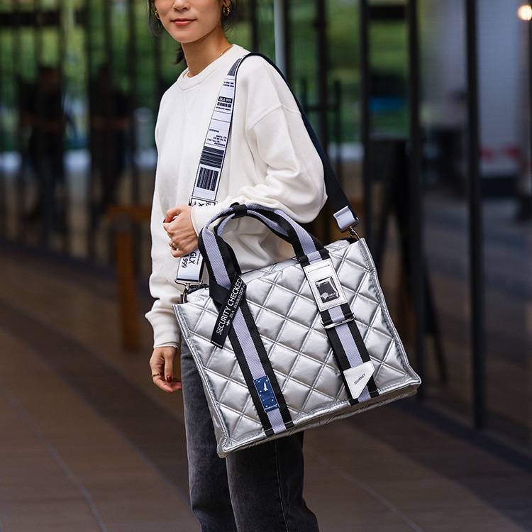 DOUBLELOOPのバッグに通底している「旅」というテーマ。「シルバー」は宇宙の旅を、その他のカラーは空の旅をイメージしたタグがあしらわれている。