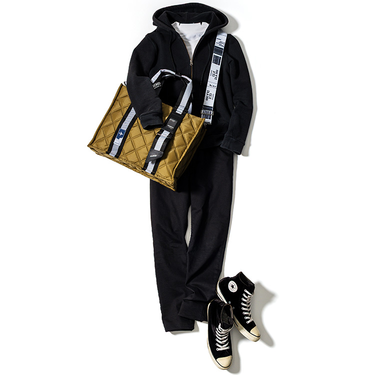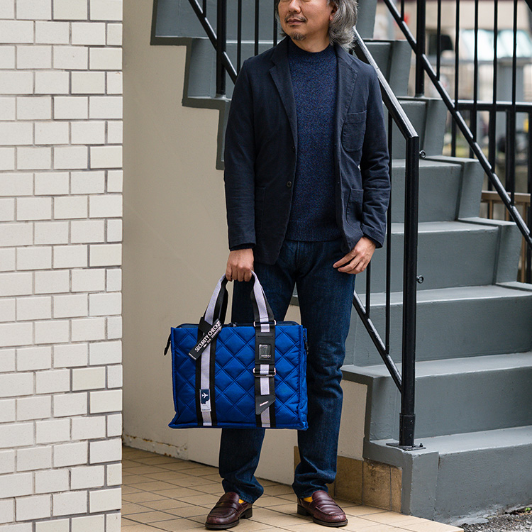 シックなカラーリングに絶妙な遊び心、さらにタフなスペックを搭載したトートは、仕事にも遊びにも◎。オンオフをシームレスに行き来するデザインが、毎日に活力を与えてくれる。