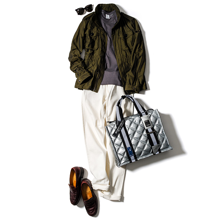 マットな質感は大人のカジュアルスタイルと好相性。おまけに撥水性も抜群なので、雨の日もお任せあれ!