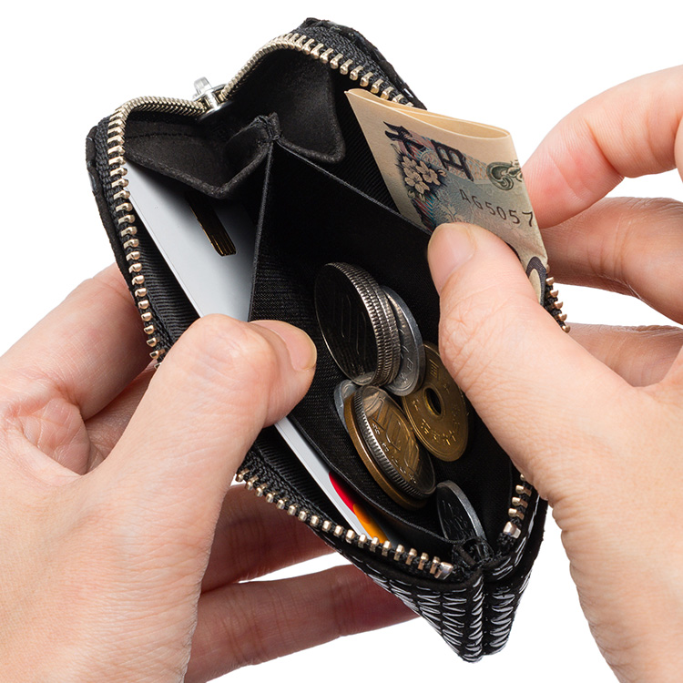 大きく開いて出し入れスムーズ!パスケースにも使える小銭入れ