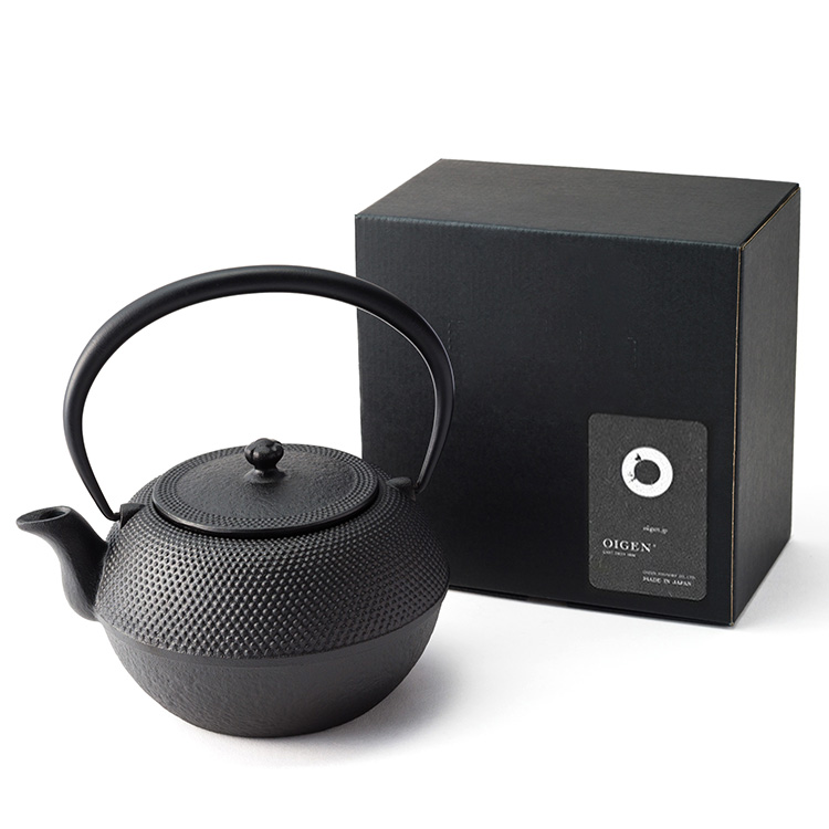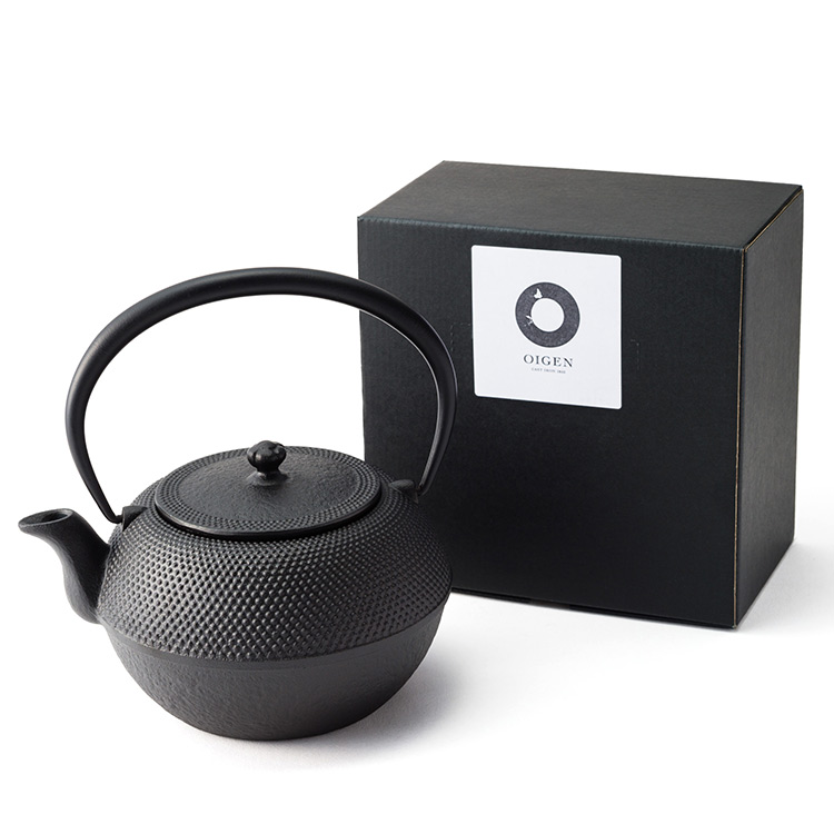 「お湯を作る」。ケトルとして使う鉄瓶でお湯を沸かすことをOIGENではそう表現しているのだという。おいしいお茶を淹れるためにはおいしいお湯が欠かせない。南部鉄器で沸かすことで水道水のカルキが抜けてまろやかな味わいのお湯になり、おいしいお茶のもとになるというわけだ。蓄熱性に優れ、温度が下がりにくく、鉄分が取れるいといった長所が挙げられる反面、重く、錆びる性質があるため、決して万人受けするものではない。しかし、お茶や料理の味、仕上がり具合の感動に加え、鉄器を愛用する人々にとっては、手入れをしながら大切に使うことも得がたい味わいのひとつだという。手間暇も含めた愛おしい“自分だけの道具”として格別なものとなるに違いない。「愉しむをたのしむ」というOIGENのモットーは、この鉄瓶に最もふさわしい。