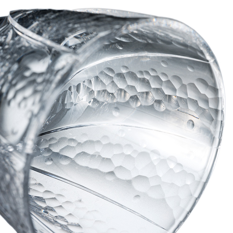 二代目の根本達也氏が作り出したブランドを代表する「雫」が、この度三代目幸昇氏によって芸術性を高めながら、より現代のニーズに応えるものへとブラッシュアップされた。力強い曲線カットが冴え渡る逸品だ。