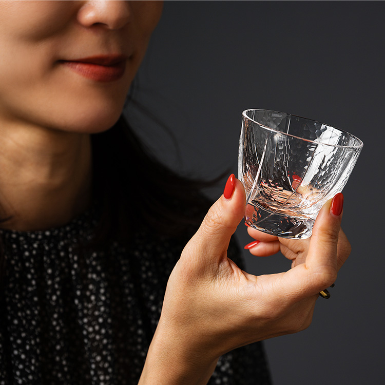 ぐい吞みとロックグラスのちょうど真ん中を突く「ミニロック」は、日本酒に限らず、焼酎、ウイスキー、梅酒…とあらゆる酒を愉しめる。