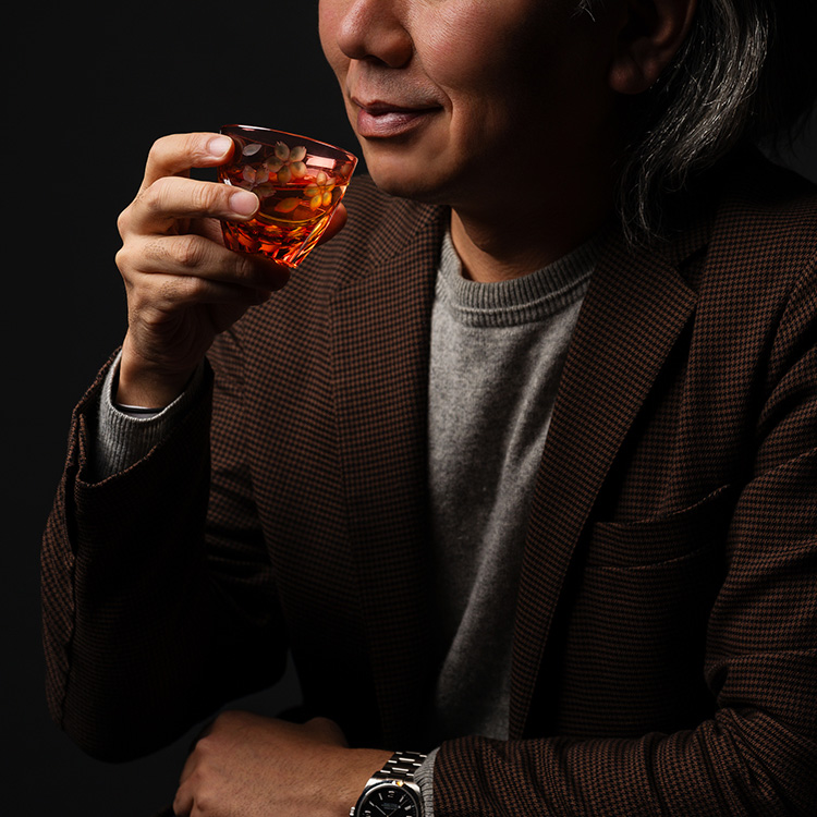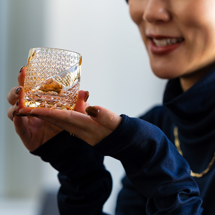 「年の瀬・新年に向けての企画に選抜して頂き大変光栄です。シンプルですが、“光”にこだわって制作しています。お酒の色合いとカットの光を存分に愉しんでほしい」(鍋谷氏)