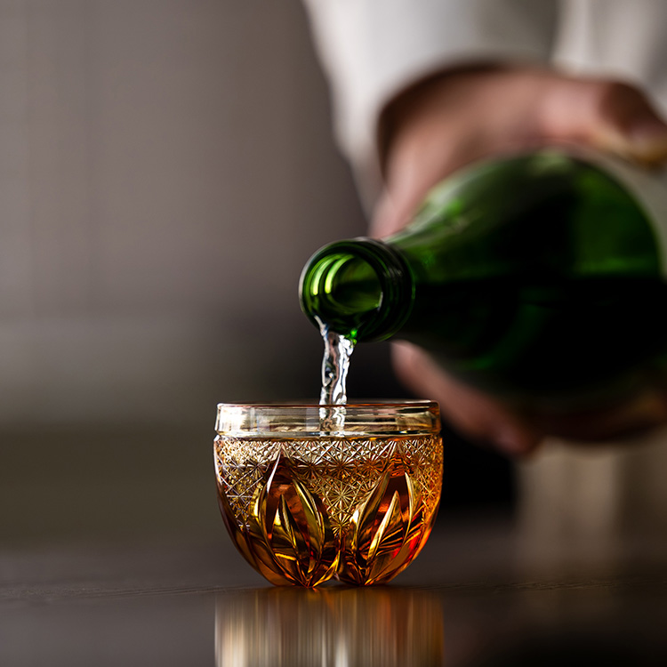 また、今回はすべての酒器に最高峰の国産クリスタルガラスを使用。宝石のような煌めきと透明度を誇る生地は、酒の味わいを最大限に引き出してくれる。