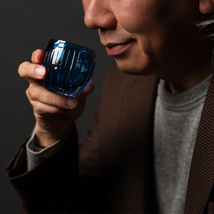 この「雫」シリーズを生み出したのは「根本硝子工芸」の二代目である伝統工芸士・根本達也氏。卓越したカット技術でその名を知られる名匠だ。