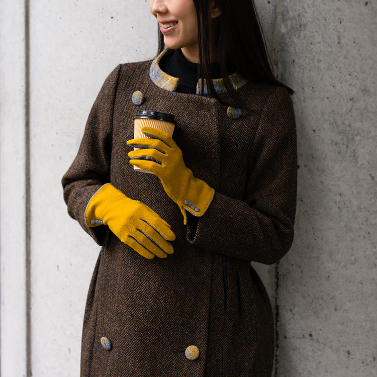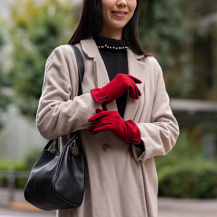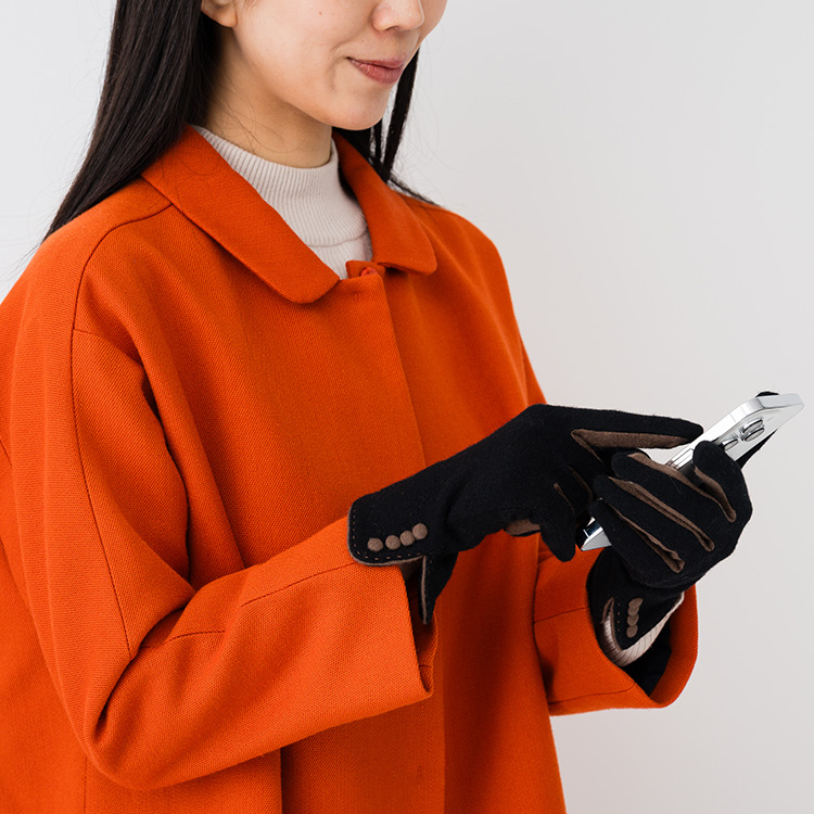 人差し指と親指には導電対応の刺繍がほどこされ、手袋を着用したまま、スマホのタッチパネルを操作できるのもうれしいポイント。手元をスラリと美しく見せ、つけるだけでウキウキするような「ボタン付きグローブ」。自分用はもちろん、プレゼントにも最適だ。文字通り日本が世界に誇る逸品で、秋冬の装いを始めよう。