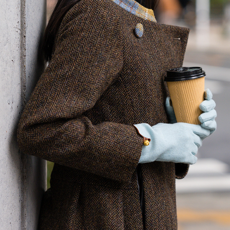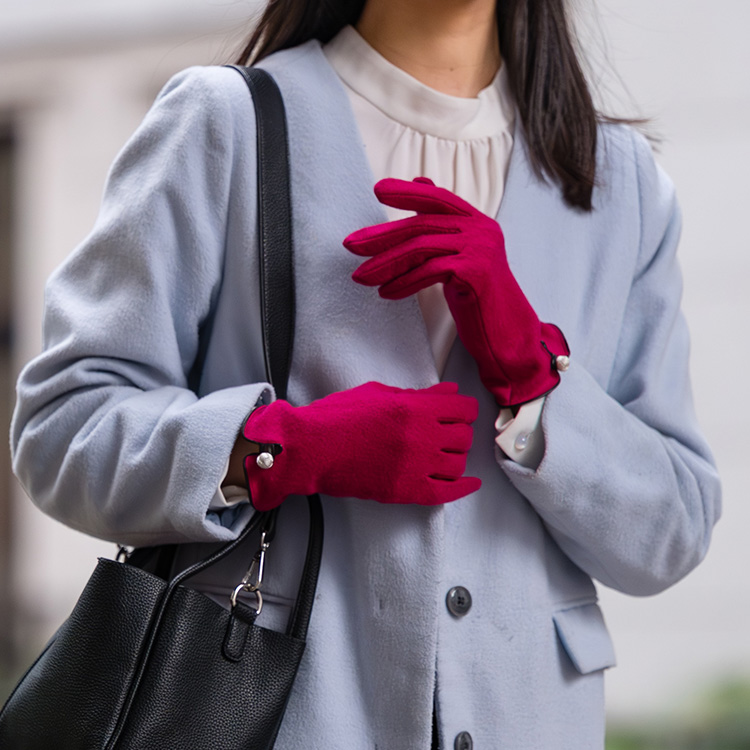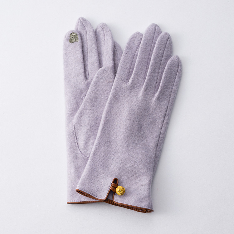 おしゃれの想像力を刺激するアイテムとなるようにデザインされた当商品。大人の女性のさまざまなファッションに対応し、あらゆるシーンで活躍できるようブラックやネイビーなどの定番カラーに加え、今年は華やかな差し色になるタイプまで展開。美しさと深みのある色合いにこだわったオリジナルカラーだ。また、カシミヤの色に合わせ、組紐モチーフはゴールドとシルバーの2色を採用。こんなところにも老舗らしい心配りを感じられる。お気に入りを一つに絞るのもいいが、当店のおすすめは2色買い。アウターとのカラーコーディネートがよりいっそう楽しくなるだけでなく、洗練されたおしゃれも叶う。素材も仕立てもこだわった手袋ながら手頃な価格帯で、2色購入しても財布の負担にならないのは嬉しい限り。装いを選ばないシンプルなルックスで母娘や姉妹でシェアして使うのにも最適だ。人差し指と親指には導電対応の刺繍が入っているため、手袋を着用したまま、スマホ操作ができるのも嬉しいポイントだ。