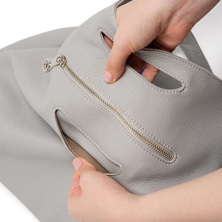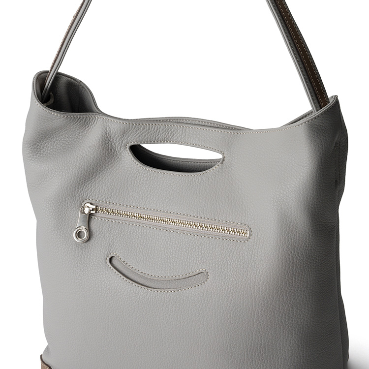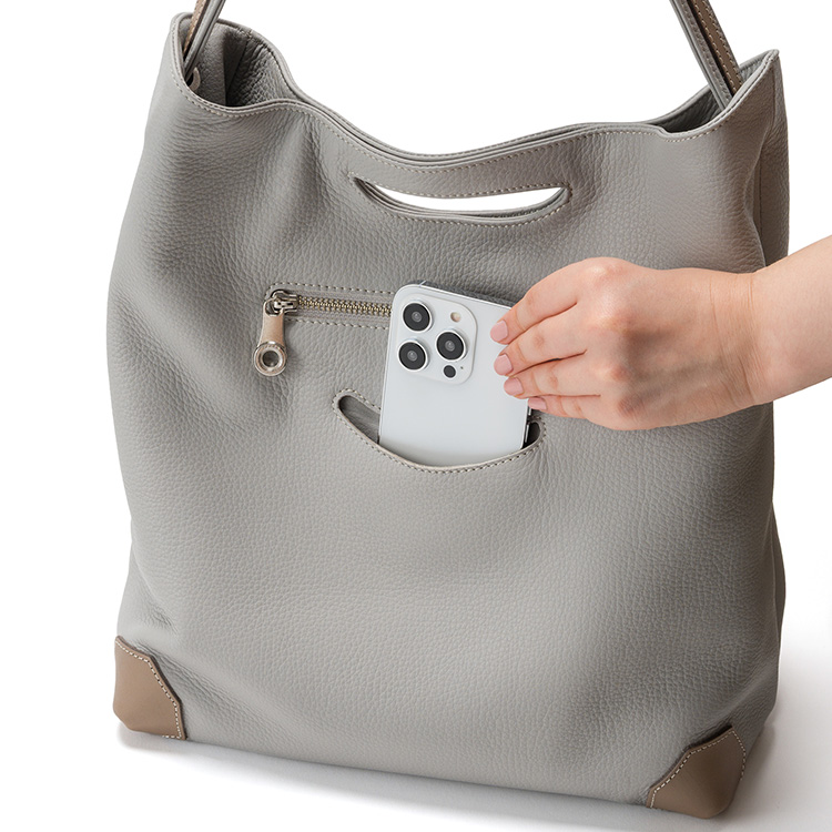 ボディから底面、ハンドルに至るまでオールレザーで仕立てた本作。これでもかと贅沢に革を使いながら、それでも重さはたったの760g。触れたときの“ふわっと感”も、バッグが軽く感じる理由のひとつだ。