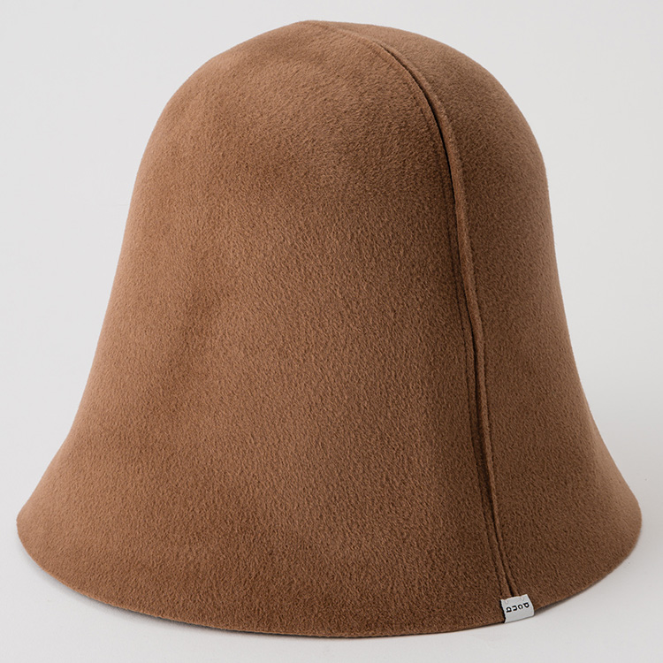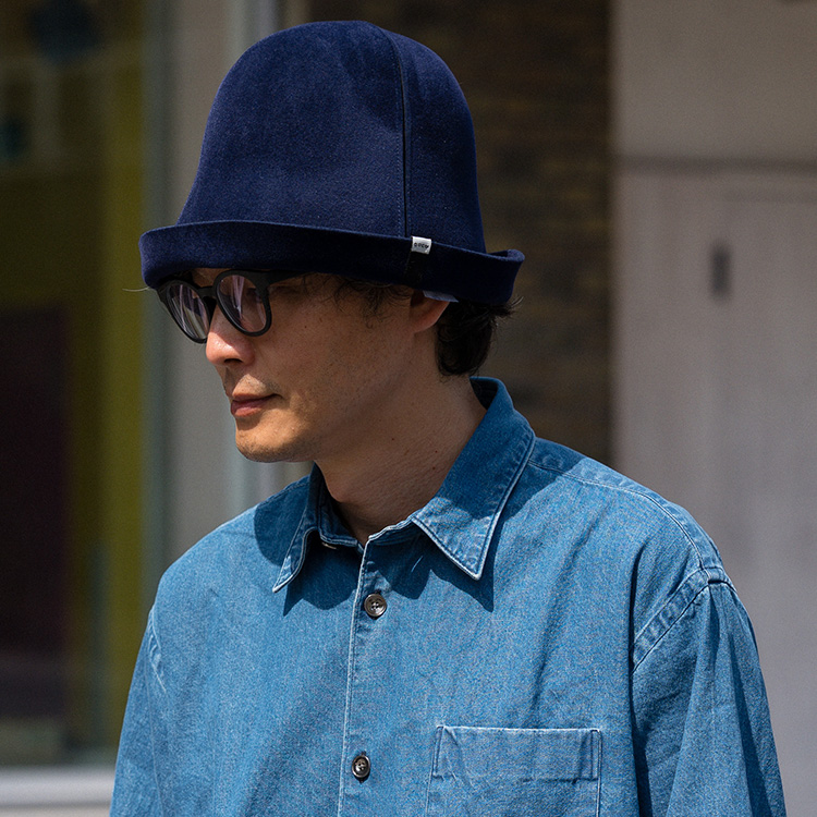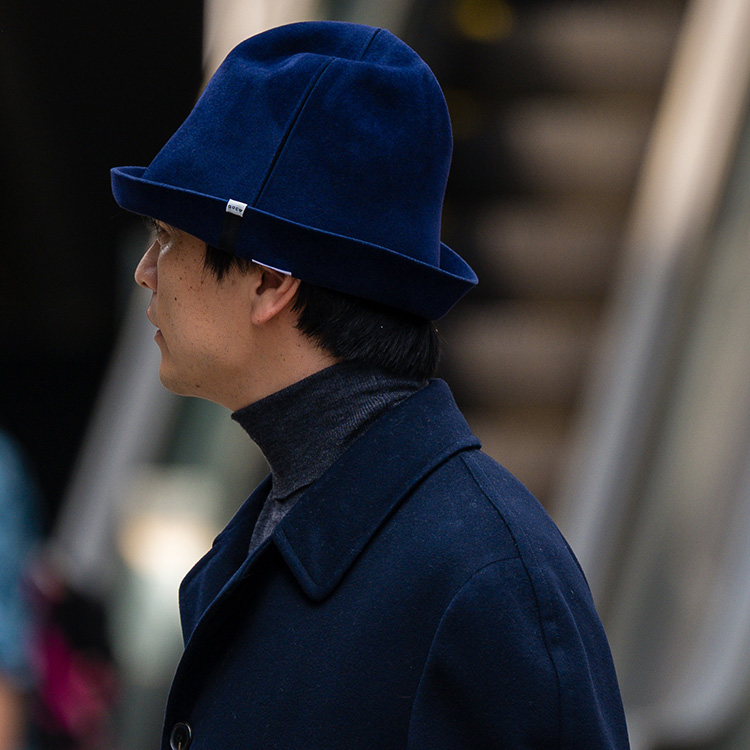 カラーは、ネイビーダークブラウンキャメルの3色を展開。カラーもフェルトの素材感も秋冬の季節感に寄り添い、見ていると帽子でオシャレしたい気持ちが高まってくる。どんなカタチでもなんとなくいい感じに見えるので、ハット初心者や、似合う帽子が少ないと嘆く方にもおすすめだし、ワンサイズだからプレゼントにもぴったり。コーディネートが寂しいときや高級感を出したいときに、さっと形を作ってかぶって、スマートな大人の着こなしを完成させよう。