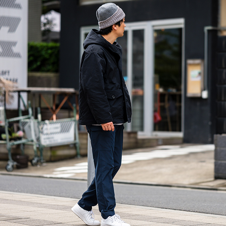 太畝のリブも秋冬のカジュアルファッションにとてもよくなじみ、季節感の演出としても優れている。