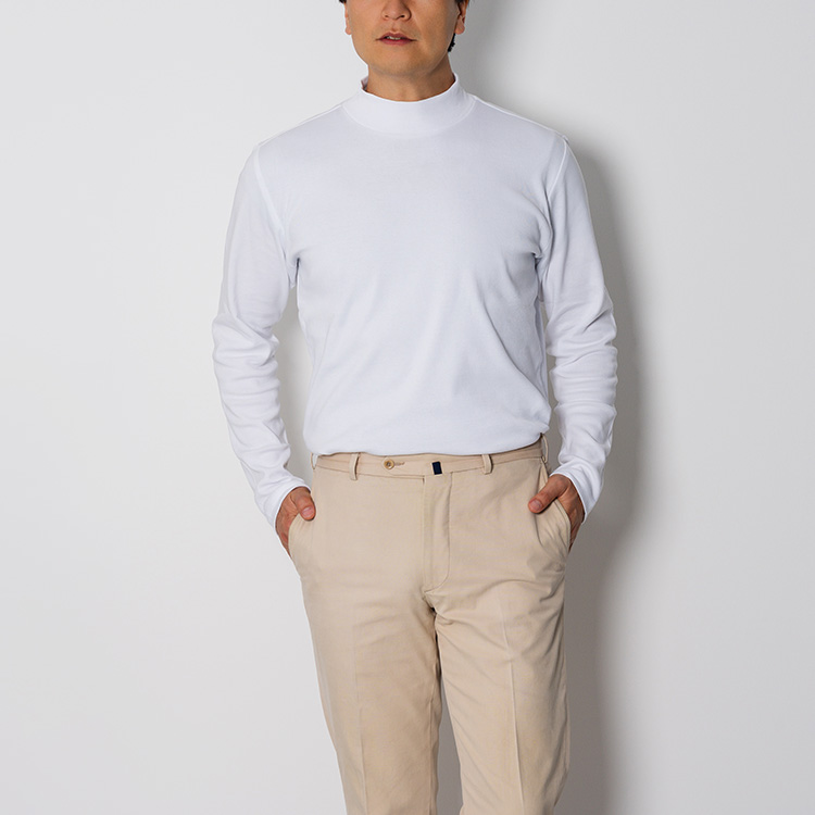 そんな微妙な悩みにフィットするのが、今回登場するモックネックのフライス編みシャツだ。