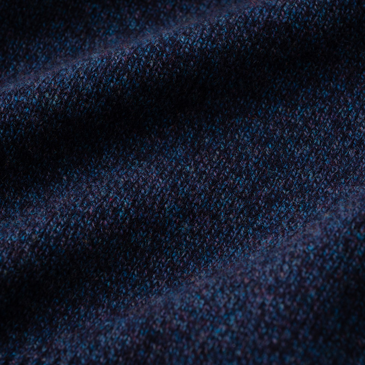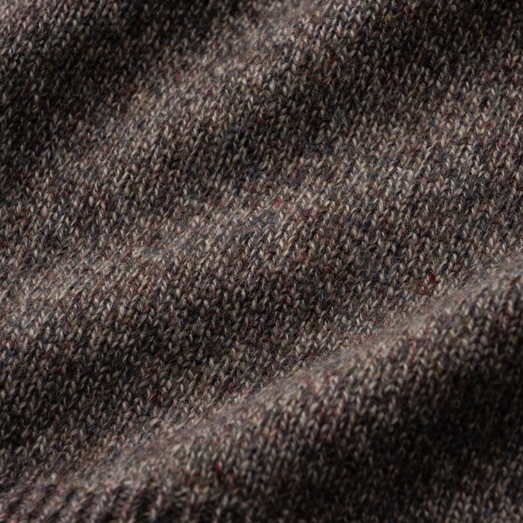 そして実は、糸使いも普通ではない。ご覧の通り複数の色が混ざった「杢調」のニットだが、普通の杢ニットは3色程度。こちらはなんと、3色混の糸と4色混の糸を撚り合わせ、合計7色の糸を作って編み立てたのだとか!