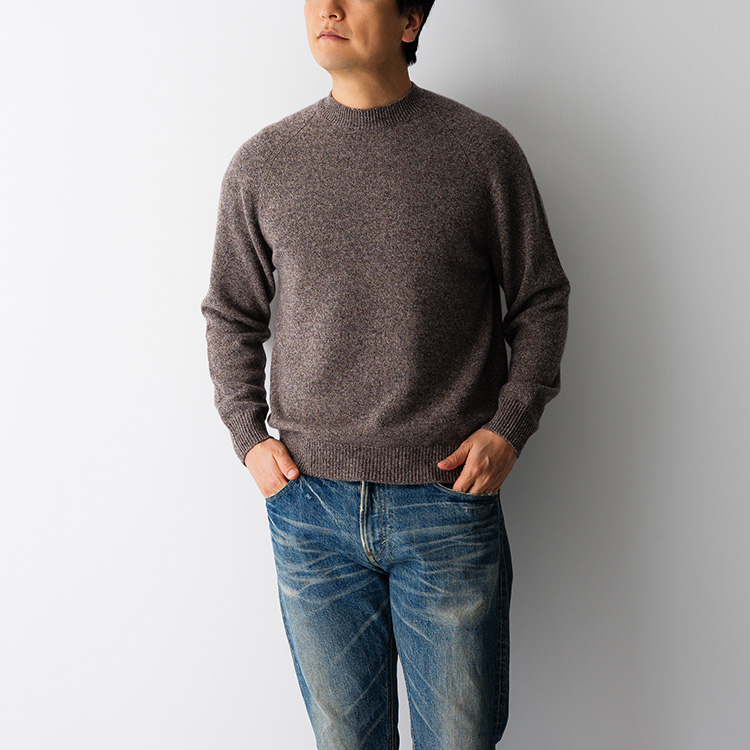 今回届いたのは、ちょっとだけ高い襟で首回りのニュアンスを魅力的にする「モックネック」のセーター
