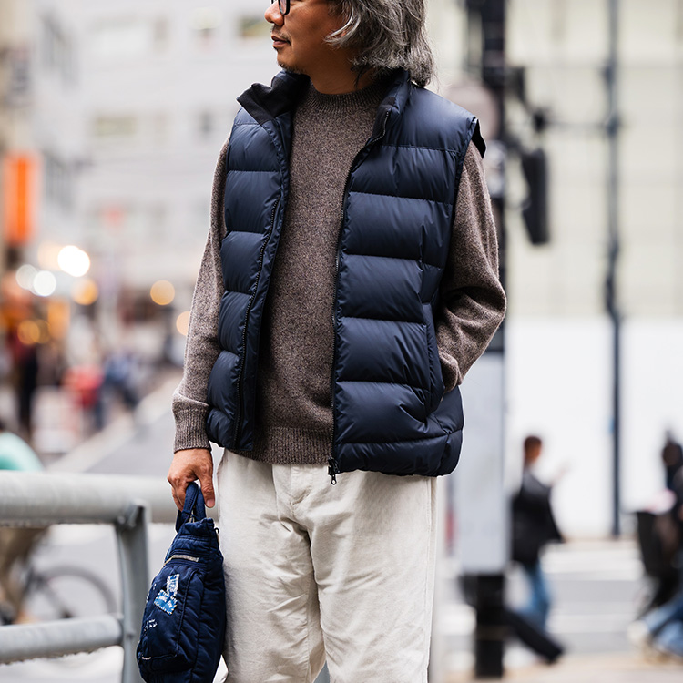 特に都市部においては、深刻に寒い日がどんどん減っていて、ガチなアウターよりも中間的で調節の効く衣類の活躍が増えている。今回のカシミヤニットのような「一枚でも充分暖かく、アウターでさらに防寒もできる」アイテムがより求められているというわけだ。
