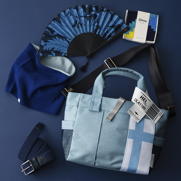 コバルトブルーとベージュのヘリンボーン柄デザイン。鮮やかなブルーの色味には爽やかさもあり、暗い色味のコートで重たい印象になりやすい秋冬スタイルを華麗に彩れる。