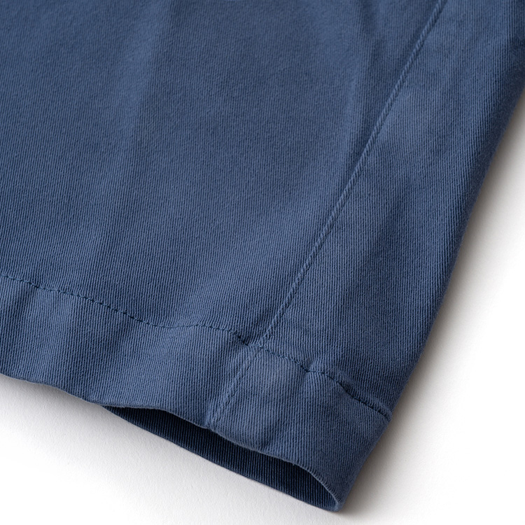 生地的にはビジネスでも使いやすいフラットな見た目だが、製品染めならではの微妙な濃淡やアタリ感が出ていて、とても味がある!