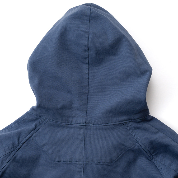 フードは一直線に襟へ向かうタイプで、かわいいカッコいいのニュアンスがいい感じ。