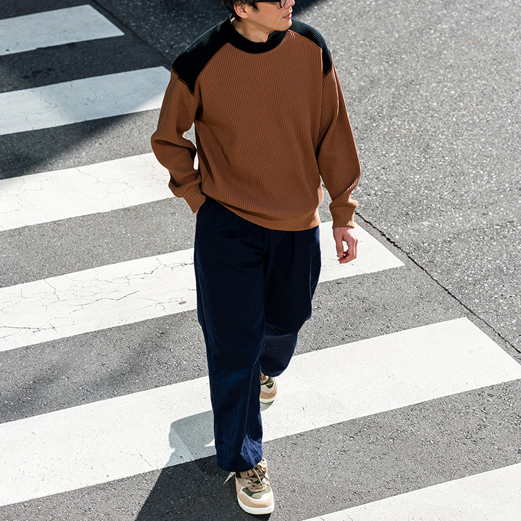 今回は、肩と襟の部分のカラーを切り替えた2トーンの3モデルをラインナップ。シンプルに着れるからこそ、パンツはデニムでもワークパンツでもスラックスでも合わせられ、どこまでも快適。