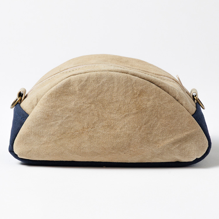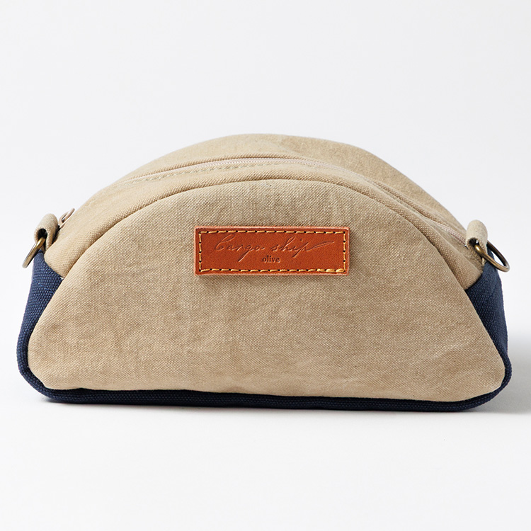 もうひとつはポーチ。ちょっと大きめの化粧ポーチ程度のサイズ。半円のアールを描いているのには理由がある。実はこれ、香川県のかたちをしているポーチなのだ。「香川を持って歩いてみない?」というユニークな提案だ。Dカンがついているので、お手持ちのショルダーベルトをつけられる仕様。