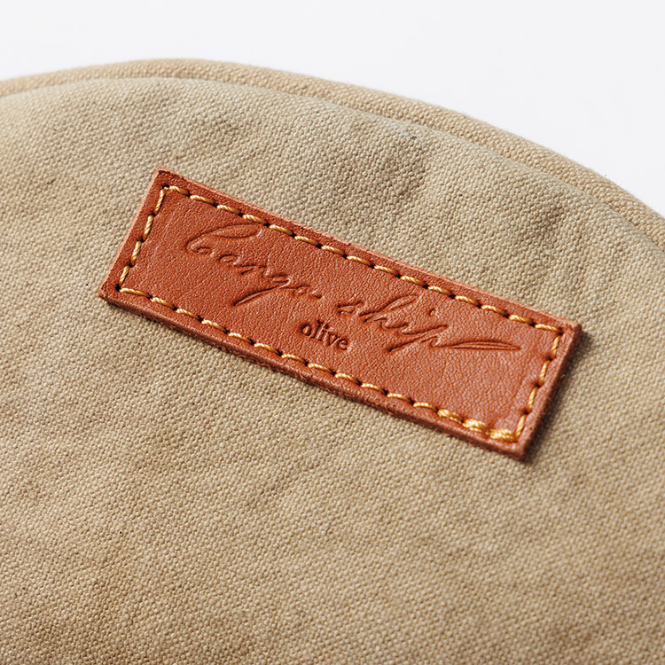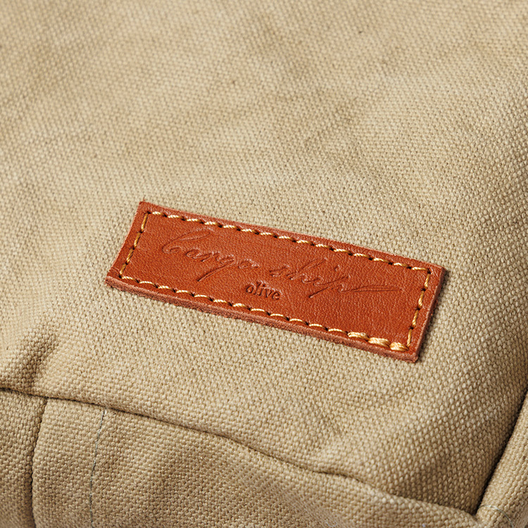 革のネームは栃木レザーを採用している。使っていくうちに帆布は徐々にくったりとした質感に、レザーは濃い色に変化し、使いこまれた帆布バッグならではのアジが出てくる。それは人生を共にした年月の証。頑丈な帆布だから、そこまで使い続けられる。