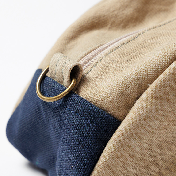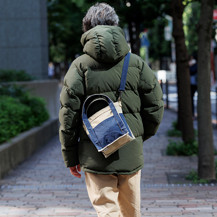 今回のアイテムはそんなオリーブ帆布に、ウォッシュをかけたネイビーの帆布を組み合わせた藤巻百貨店別注のバイカラー。