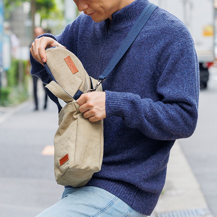 そんな彼らに、藤巻百貨店が別注仕様でバッグをオーダー! ちょっとしたお出かけにとても便利だし、香川の風土をめいっぱいに受け止めた帆布の色と表情が、実に味わい深い!