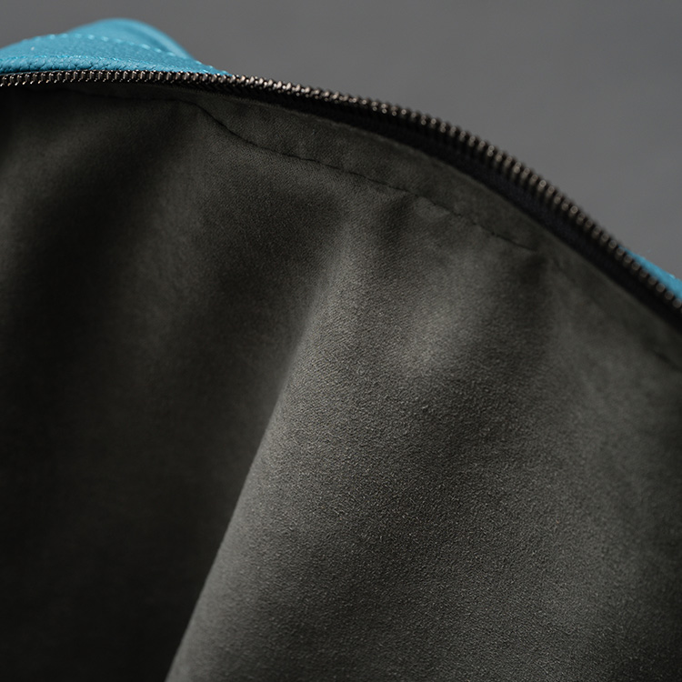 通常、天面を開けるとファスナー自体の重さで下がってきやすいのだが、ハリのあるジャーマン・シュリンクのおかげで下がりにくくなっているという。